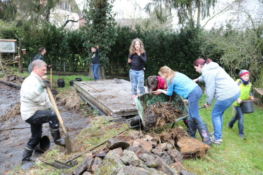 Molche retten, Müll entsorgen, Pläne schmieden – Neugestaltung des Schulgartens der Albert-Schweitzer-Schule hat mit vielen Helferinnen und Helfern begonnen