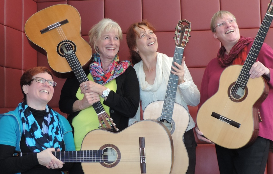 Sonntagsfrühstück im Klinikum Fulda: Das Gitarrenensemble „Ladylike“ der Städtischen Musikschule Fulda spielt am 17.09.2017 von...