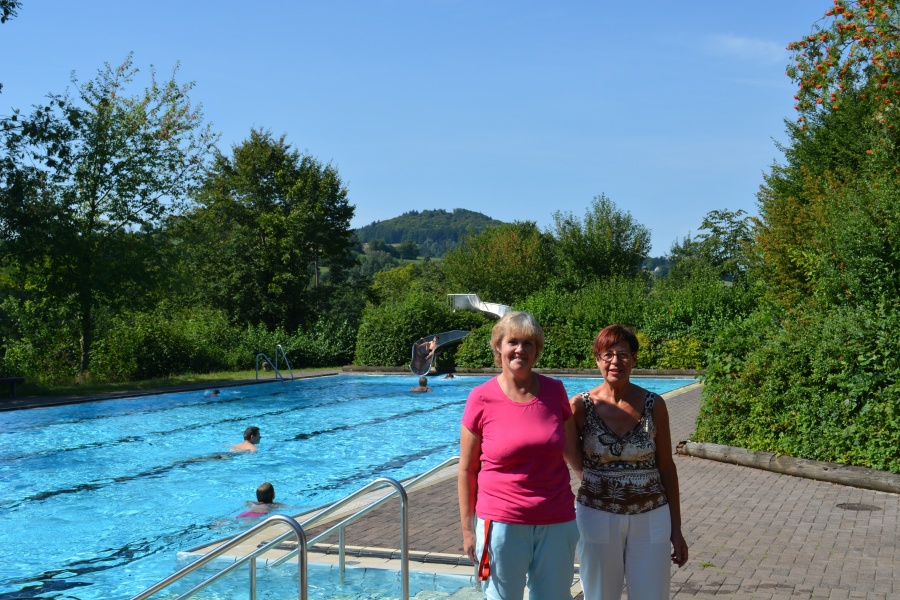 Beim Schwimmen den Ausblick auf Pferdskopf und Ebersburg genießen: Das ist im Preis der Eintrittskarten für das Freibad Poppenhausen...