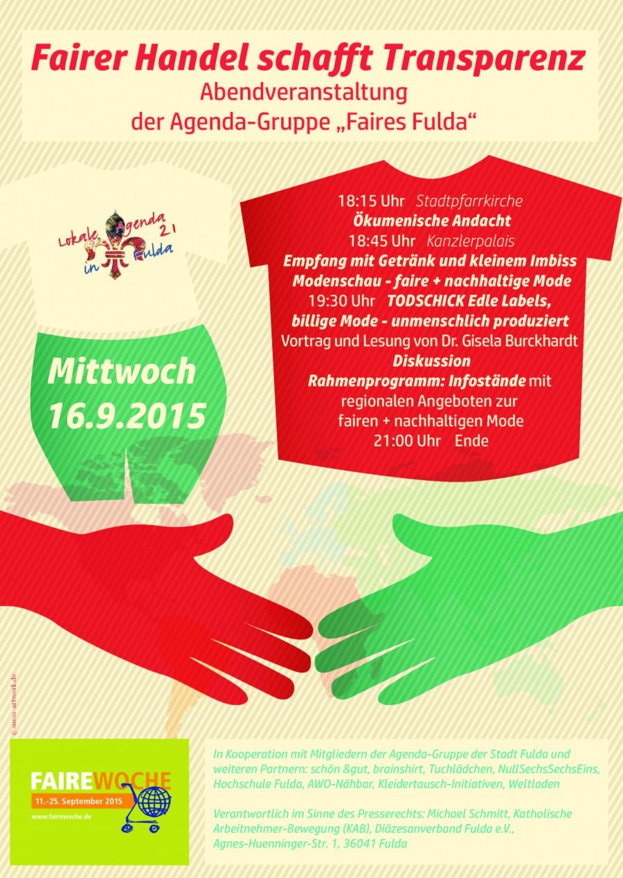 Veranstaltung mit ökumenischer Andacht, Modenschau und Lesung der “Agenda Arbeitsgruppe Faires Fuldaâ€