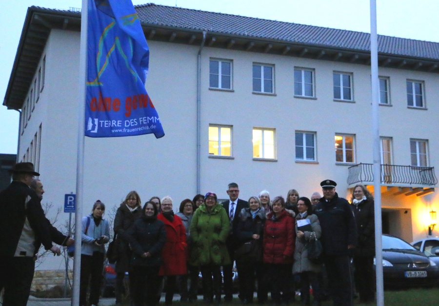Zum 25. November, dem internationalen Gewaltschutztag, wurde wieder die blaue Fahne mit der Aufschrift „Nein zu Gewalt an Frauen – Frei...