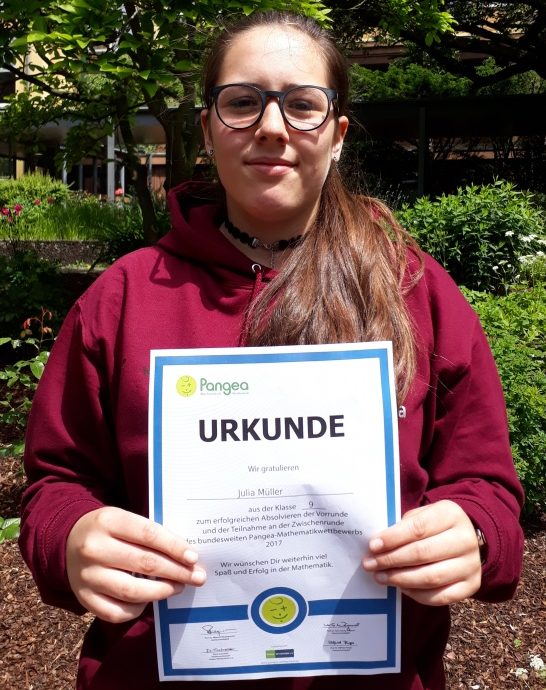 Die Marienschülerin Julia Müller (9a) steht im Finale des bundesweiten Pangea-Mathematik-Wettbewerbs. Nach erfolgreichem Absolvieren der...