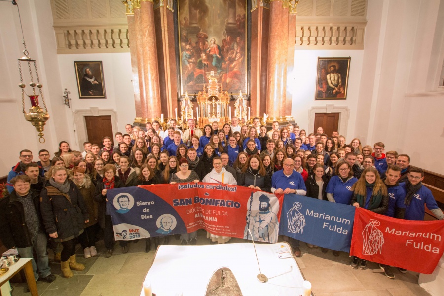Aussendung zum Weltjugendtag nach Panama – Weihbischof Diez spendet 174 Jugendlichen aus dem Bistum Fulda den Reisesegen, Grußwort des künftigen Bischofs Gerber verlesen