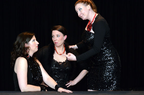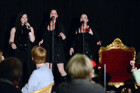 Fulda. Am Mittwoch, 19.Dezember 2012, war es wieder so weit. Der letzte Mittwoch im Monat gehört der Entertainerin Marianne Blum und ihrer Veranstaltungsreihe „Gernsehen und Abendessen“. Für viele Fuldaer steht dieser Termin fest im Terminkalender und so musste die Veranstaltung wegen Platzmangels frühzeitig vom Keller in das größere Museumscafé umziehen, dessen Plätze ebenfalls innerhalb kürzester Zeit ausverkauft waren. Zu Gast waren Sabinett, das Fuldaer Lady-Trio, das sich an diesem Abend ausschließlich mit Stücken aus eigener Feder präsentierte. Die Stücke, allesamt deutschsprachig, erzählen aus dem Seelenleben dreier Frauen die mit beiden Beinen fest im Leben stehen. Es scheint, als ob sie aus dem Nähkästchen plaudern und sich vor allem mit den Damen des Publikums auf eine charmante Art verbünden. Souverän sangen sie über Soundprobleme und ausfallende Mikros hinweg und erzählten von der heilsamen Wirkung von Prosecco, von Sehnsüchten und französischen Liebhabern.