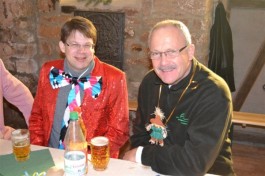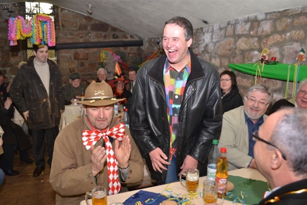 Schackau (dk). Die Narren beim fastnachtspolitischen Frühschoppen im Zwergensaal toben, wenn Büttenredner die da ,,oben“ schelten und dann wieder loben. Wenn der Faschingsprinz einmarschiert ins Hofgut Schackau, dann wird gesungen, geschunkelt und gelacht – dass es kracht. Gastgeber Winfried Rippert hat wieder eingeladen: Politiker, Unternehmer, Leute aus Kirche und Verwaltung sowie Fachleute aus Justiz, doch einerlei, ob sie kommen aus Fulda Stadt oder Land – sie machen sich alsbald mit dem Nachbarn humorvoll bekannt. Die Mitglieder des Freundeskreises St. Bonifatius sowie des Mittelstands der CDU – Winfried Rippert bei beiden Präsident –, sind gekommen, nicht beklommen, einige haben ihre Damen dabei, denn es ist nicht einerlei, wenn Bier, Wein und Sekt zu sehr munden, dann kommt die Chauffeuse zu ihrem Recht und fährt ihr bestes Stück sicher heim und freut sich schon auf’s kommende Jahr, wenn der Gatte dann kein Alkohol trinkt und sie ausgelassen feiern kann – dann kann sie mal loben ihren tollen Mann.