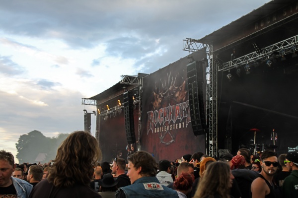 Das Rockharzfestival überzeugt auch in diesem Jahr durch gute Organisation. Sicherheitskräfte weisen die Fahrzeuge auf dem Campinggelände ein, welches sich überraschend schnell füllt. Schon um 16 Uhr sind gut zwei Drittel des 2014 weiter vergrößerten Geländes mit Zelten, Pavillons und Autos ausgelastet. Während die einen noch am Aufbauen der Camps sind, erkunden die anderen bereits das eigentliche Festivalgelände. Wie auch im letzten Jahr wurde extra für den Anreisetag eine mobile Bühne aufgebaut, die zwar deutlich kleiner als die beiden Hauptbühnen ist, aber ebenso den Zweck erfüllt und zum Feiern einlädt. Eingestimmt wird sich hier unter anderem mit Power-Metal von Iron Savior aus Hamburg und Brainstorm aus dem Stuttgarter Raum. Ein durchweg gelungener Auftakt für das Rockharz.
