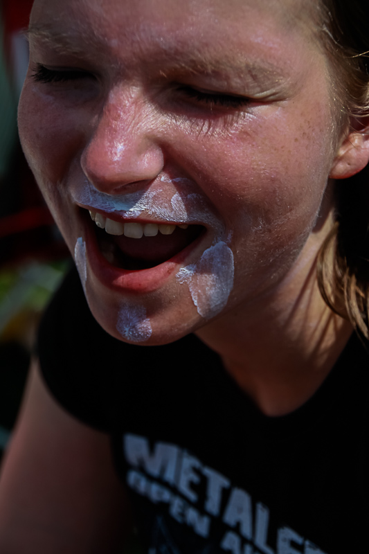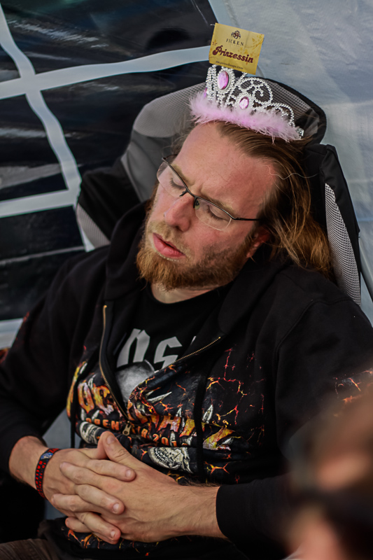 Der Freitag beginnt entspannt. Viele haben bis früh in den Morgen gefeiert und stehen daher für frischen Kaffee im Supermarktzelt an. Neben Kaffee, Kakao und anderen Heissgetränken kann man hier auch für den Notfall alles kaufen. Snacks, Süßes, Grillfleisch – mit mindestens 120% Kostenaufschlag muss jedoch gerechnet werden. So manch ein Grillnotfall ist es vermutlich wert. Schon kurz nach 11 Uhr geht es weiter mit der Musik. Dynamite, Nothnegal, Undertow und Heretoir heizen die Stimmung hoch. Spätestens zu Hämatom (deutscher Trash-Metal) ist auch der letzte Besucher wieder fit. Xandria trumpfen mit Symphonic Metal auf, welcher es durchaus Wert ist, einmal angehört zu werden. Auch hier sieht man die abwechslungsreiche Bühnenbesetzung. Pagan Metal von Equilibrium bietet auch dem Fan dieser Richtung ein gutes Programm.