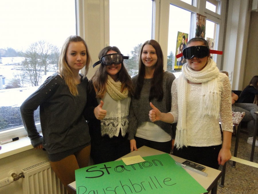 Besonders anschaulich und beliebt waren die Rauschbrillen, die mit den simulierten 1,3 Promille nachempfinden ließen, wie schwer es ist, ein Türschloss zu öffnen oder noch gerade zu laufen. Die zum Abschluss des Parcours angebotenen alkoholfreien Cocktails zeigten dann, dass es auch ohne Alkohol geht.