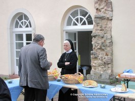 Nach dem Gottesdienst bot sich für alle Teilnehmer die Möglichkeit, bei zahlreichen persönlichen Begegnungen und frohem Beisammensein eine kleine Stärkung zu sich zu nehmen und den extra von der Mutterhaus-Küche gebackenen „Elsässischen Gugelhupf“ zu kosten.