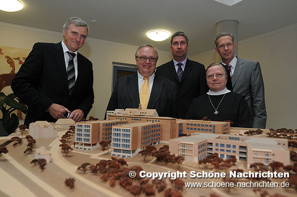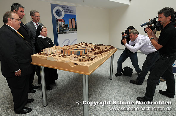 Fulda. Mit einem symbolischen Spatenstich gaben das Herz-Jesu-Krankenhaus und das Klinikum Fulda gestern den Startschuss für den Bau des gemeinsamen Psychiatrischen Versorgungszentrums am Standort Buttlarstraße. Die neue Psychiatrie ist als dreigeschossiges, H-förmiges Gebäude geplant, mit Innenhof und geschütztem Außenbereich. Die neue Klinik wird über 96 stationäre Betten und 20 Tagesplätze für Psychiatriepatienten verfügen und voraussichtlich Ende 2010 fertiggestellt sein. An den Kosten in Höhe von 20 Millionen Euro beteiligt sich das Land Hessen mit einem Zuschuss von 19,5 Millionen Euro.