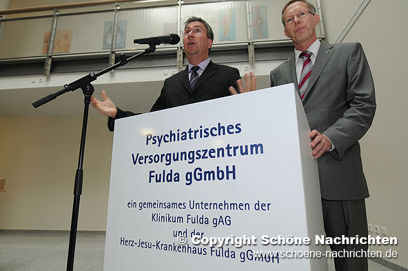 „Durch die trägerübergreifende Kooperation von Herz-Jesu-Krankenhaus und Klinikum Fulda entsteht direkt am Herz-Jesu-Krankenhaus ein modernes psychiatrisches Versorgungszentrum mit 96 Betten. Insofern haben wir in zweierlei Hinsicht ein zukunftsweisendes Projekt moderner Krankenhauspolitik auf den Weg gebracht: 1. Die direkte Anbindung psychiatrischer Versorgungsstrukturen an ein Allgemeinkrankenhaus und 2. Die trägerübergreifende Vernetzung von Gesundheitsleistungen“, so Staatsminister Jürgen Banzer anlässlich des Spatenstichs für den Bau des psychiatrischen Versorgungszentrums.