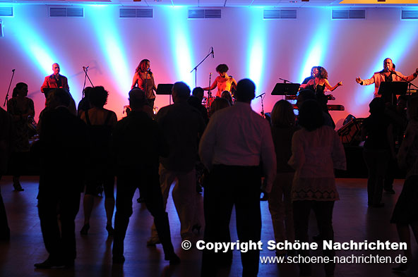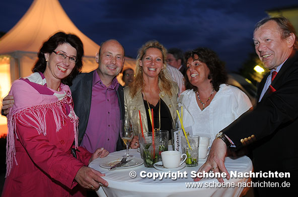 Das Publikum bot eine bunte Mischung aus Vertretern der Wirtschaft, Gesundheitswesen, Medien, Kunst und Politik – wobei die Politiker mit den beiden Bürgermeistern Kolb und Meissner eindeutig in der Minderheit waren. Gastgeber an diesem Abend waren die R+S solutions Holding AG mit Markus Röhner und Lothar Mihm, das Neuro Spine Center mit Familie Dr. Al-Hami und die Agentur public relations mit Sabine Ick. Eine lockere Sommer-Party-Atmosphäre hatte das Trio unter Leitung von Dr. Samir Al-Hami in die Münsterfeldhalle und auf die angrenzende Terrasse gezaubert. Den „heißen Draht“ zur musikalischen Unterhaltung des Abends hatten Markus Röhner und Lebensgefährtin Susanne Hahn hergestellt und die „Famous 9“ von Mauritius via Manchester und Frankfurt nach Fulda geholt. Das Team um Chefkoch Thorsten Schneider stand mit einem großen Grillbüffet parat und zeichnete für die exzellente Verköstigung verantwortlich.