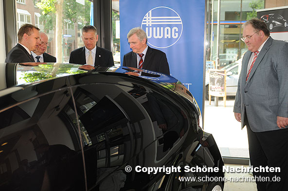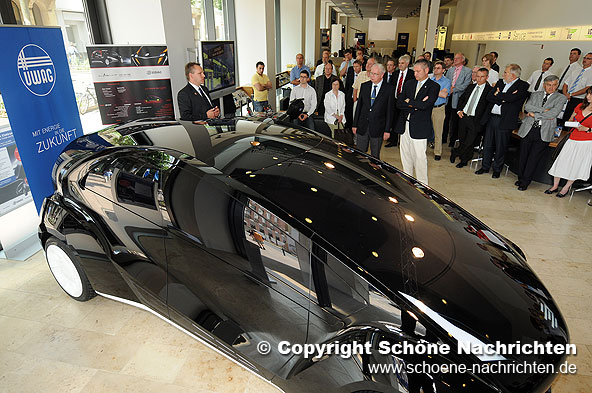 Im Vergleich zu Fahrzeugen mit Verbrennungsmotor zeichnen sich Elektromobile aufgrund ihrer hohen Wirkungsgrade und der geringen Schadstoffemissionen durch ihre hervorragende Umweltbilanz aus. Die Ausstellung im ÜWAG-Kundenzentrum zeigt, wie Elektromobilität in unserer Region zukünftig aussehen kann. Highlight der Ausstellung ist das „EDAG Light Car – Open Source“, das Jörg Ohlsen und Oberbürgermeister Gerhard Möller unter dem Beifall der Gäste im Rahmen der Ausstellungseröffnung enthüllten. Im so zum „Showroom“ gewandelten Kundenzentrum der ÜWAG ist diese Studie der EDAG nach ihrer Premiere im Genfer Autosalon 2009 zum ersten Mal öffentlich in der Region zu bestaunen.