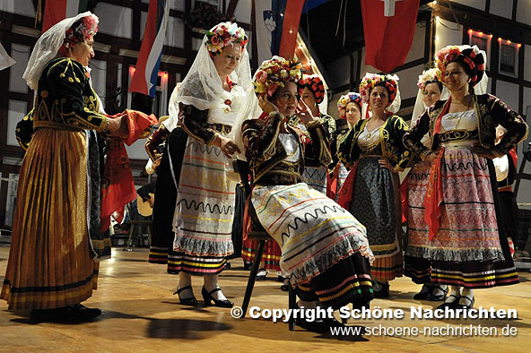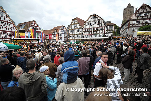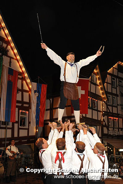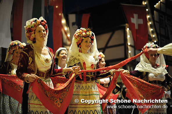 Im Anschluss zeigten alle teilnehmenden Trachten- und Folkloregruppen einen Querschnitt ihres Repertoires auf dem idyllischen Marktplatz und im Hof der Musikschule. Den Sonntag beschließt heute Abend um 22:30 Uhr ein Feuerwerk, das von dem 36 Meter hohen Hinterturm im Burgenring abgebrannt wird und der nächtlichen Stadt sicher eine romantische Atmosphäre verleiht.