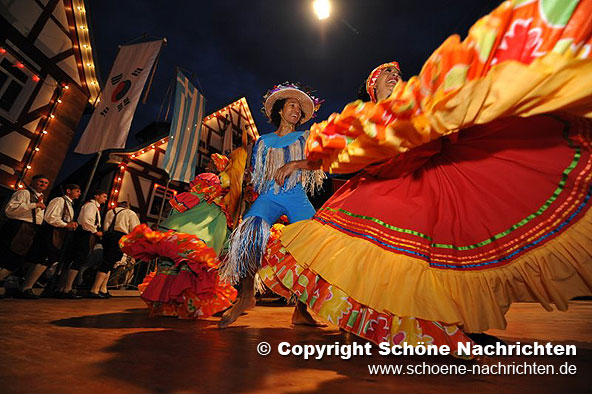 Zum Hintergrund: Das Trachtenfest in Schlitz ist eines der größten internationalen Folklorefeste Europas. Von Freitag, 10. Juli 2009, bis Montag, 13. Juli 2009, dreht sich in der Burgenstadt im Vogelsbergkreis alles rund um Party, Trachtentanz und Musik. Highlight sind die zehn internationalen Folkloregruppen, die privat bei Schlitzer Familien untergebracht werden. Bei den Auftritten auf Freilichtbühnen im mittelalterlichen Stadtkern präsentieren die rund 300 Gäste – diesmal unter anderem Gruppen aus Südafrika, Kolumbien und Süd-Korea – Tänze und Musik ihres Landes. Höhepunkt ist der historische Festzug am Trachtenfest-Sonntag, 12. Juli 2009, der aus über 80 Festwagen, Fußgruppen und Musikkapellen besteht. Einmalig: die Festwagen werden ausschließlich von Kuh- und Pferdegespanne gezogen. Weitere Informationen unter http://www.schlitzer-trachtenfest.de (Julian Dern)
