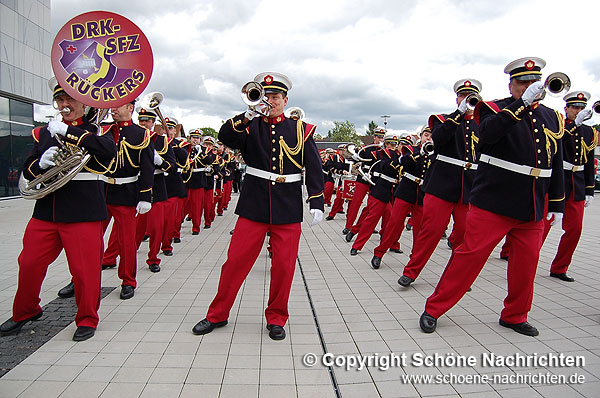 Rückers. Die Musiker des DRK Spielmanns- und Fanfarenzug Rückers werden am 14.08. bei der kulturellen Eröffnungsveranstaltung der 12. IAAF Leichtathletik WM berlin 2009â„¢ am Brandenburger Tor im Showprogramm mitwirken. Zur “Welcome Night” mit 500 Künstlern und Musikern werden 6000 Besucher erwartet. Am späten Abend soll eine Aufzeichnung der Veranstaltung im Fernsehen ausgestrahlt werden. Die Moderatoren Norbert Dobeleit und Anastasia Zampounidis werden zahlreiche Ehrengäste aus Politik und Sport – wie den Regierenden Bürgermeister Klaus Wowereit und den IAAF-Präsidenten Lamine Diack – begrüßen.