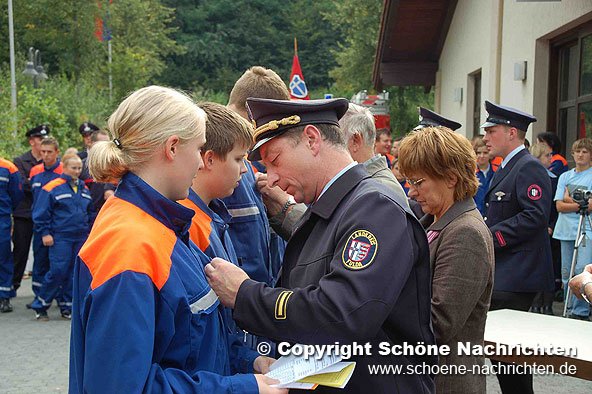 Nachdem alle Übungen und Disziplinen absolviert waren, wurde am Nachmittag an 24 weibliche und 94 männliche Jugendfeuerwehrmitglieder die höchste Auszeichnung in der Jugendfeuerwehr feierlich verliehen. Dabei waren auch zahlreiche Gäste zugegen, wie der Kreisbeigeordnete Alfred Metz der in seinem Grußwort die Jugendlichen für ihre Leistungen lobte. Auch Gersfelds Bürgermeisterin Margit Trittin rief dazu auf nach der Jugendfeuerwehrzeit in die Einsatzabteilung überzutreten, denn Feuerwehr sei ein wichtiges Element jeder Stadt bzw. Gemeinde.