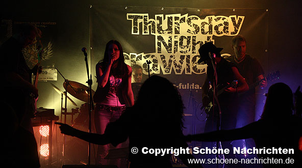 Hünfeld. Die Rockcoverband „Thursday Night Crawlers“ folgen der Einladung des legendären „Musikkeller Kornhaus“ in Hünfeld am Samstag, dem 24. Oktober 2009, ab 21:00 Uhr und versprechen ein wahres Rockfeuerwerk mit bekannten Rockhits der letzten 30 Jahre zu entzünden. Die 6 Jungs um Leadsängerin Susanne Koczewski begeisterte in den letzten Jahren das Publikum auf zahlreichen Konzerten in ganz Osthessen und Franken und wagt nun den Sprung auf die heimischen Bühnen. Am kommenden Samstag, findet im „Kornhaus“ in Hünfeld eine Rockparty statt, wo die 7 Hobbymusiker ab 21.00 Uhr auf der Bühne zu sehen sind.