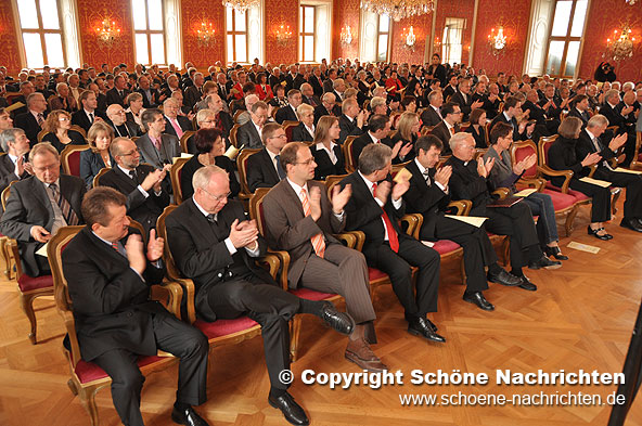 Fulda. 60 Jahre Bundesrepublik Deutschland bedeutet zugleich auch 60 Jahre Gerhard Möller. Der Fuldaer Oberbürgermeister feierte zusammen mit etwa 200 geladenen Gästen seinen runden Geburtstag bei einem Empfang im Fürstensaal des Stadtschlosses. Im Beisein seiner Familie nahm er die Glückwünsche und Geschenke der vielen Gratulanten erfreut entgegen: „Ich freue mich sehr über die Anerkennung und verspüre eine große Dankbarkeit.“ Die Bodenhaftung bleibe aber bestehen, denn niemand sei fehlerfrei, betonte der Jubilar, der sich besonders bei seiner Frau Michaela und seiner Familie für die Unterstützung bedankte.