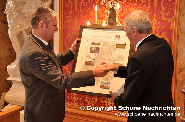 Als nächster würdigte Landrat Bernd Woide die Verdienste Möllers für die Region, die bis heute fortwirken. Unter anderem nannte er dabei sein Bemühen um die Schulen, das Joboffensive-Center und die Krankenhauskooperation. „Sie haben die Region geprägt als OB und auch in den 26 Jahren in Diensten des Landkreises“, so Woide. Er stellte die „preußischen Tugenden Aufrichtigkeit, Gradlinigkeit, Bodenständigkeit, Sparsamkeit, Genauigkeit und Verlässlichkeit“ heraus, die seine Person und Amtsführung auszeichnen würden.