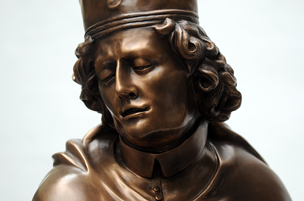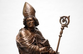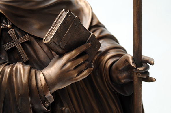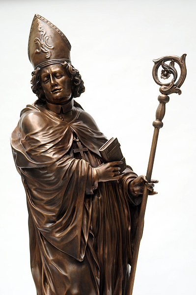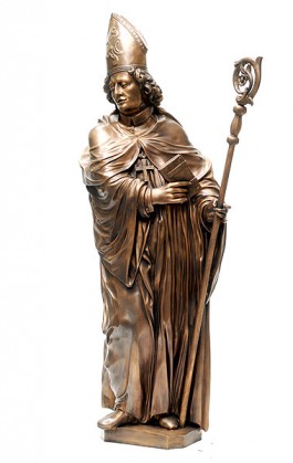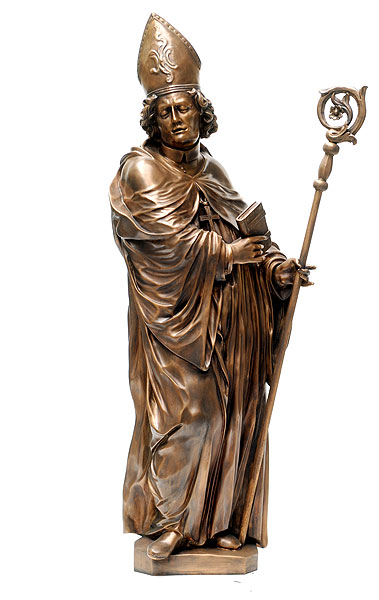 Fulda. Endlich ist es soweit – der Borgiasplatz ist fertig umgebaut und der Hl. Sturmius erhält mitten in Fuldas Innenstadt ein Denkmal. Im Zuge der Rekonstruktion des Brunnens, der an seinen ursprünglichen Platz zurückkehrt, steht der Stadtgründer nun erstmals neben Bonifatius und dem Ordensgründer Benedikt. Gerstern wurde der Sturmiusbrunnen gesegnet und in Betrieb genommen.