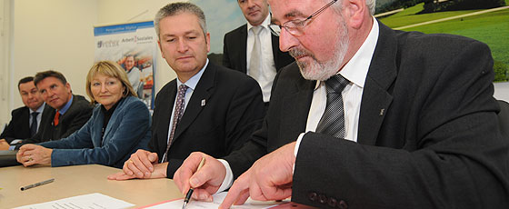 Fulda. Die fünf hessischen Landkreise Fulda, Hersfeld-Rotenburg, Vogelsberg, Main-Taunus und Odenwald wollen bei der Umsetzung des Bundesprogramms „Perspektive 50plus – Beschäftigungspakte für Ältere in den Regionen“ zusammenarbeiten. Am vergangenen Dienstag haben Landrat Bernd Woide (Fulda) sowie die Kreisbeigeordneten Christa Bittner (Hersfeld-Rotenburg), Gerhard Ruhl (Vogelsberg), Hans-Jürgen Hielscher (Main-Taunus) und Michael Vetter (Odenwald) eine Kooperationsvereinbarung im Fuldaer Kreishaus unterzeichnet.