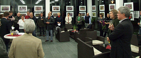 In seiner Begrüßung zitierte Alexander Hohmann Albert Einstein – „ Mann muss die Welt nicht verstehen. Mann muss sich darin zurechtfinden!“ Dies bedeute auch die Perspektiven der eigenen Sichtweise zu ändern, um neue Wege zu finden und Strategien zu entwickeln. Eine wichtige Sichtweise sei dabei die Vogelperspektive. Er betonte, dass für dieseAusstellung neben den Bildern selbst auch der Ausstellungsort in der neuen Haune Halle, einen passenden Rahmen biete.