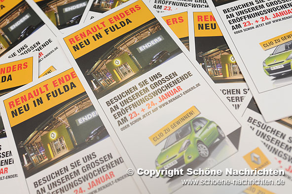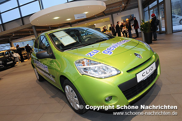 Fulda. Anlässlich der Neueröffnung des Renault-Autohauses am 23. Januar fand eine große Verlosungsaktion statt. Am vergangenen Freitag wurden die glücklichen Gewinner ermittelt. Den ersten Preis, einen Renault Clio, gewann Bernd Baier aus Fulda. Der zweite Preis, eine Woche einen Renault nach Wahl fahren, ging an Lothar Melcher aus Eichenzell. Über den dritten Preis, ein Wochenende mit dem neuen Renault Megane Cabrio, freute sich Regina Kaib aus Fulda. Ein Gutschein über 150 Euro für Werkstatt und /oder Zubehör ging an Werner Hohmann aus Eiterfeld. Über einen Gutschein im Wert von 100 Euro freute sich Matthias Trommer aus Hünfeld. Herzlichen Glückwunsch an alle Gewinner!