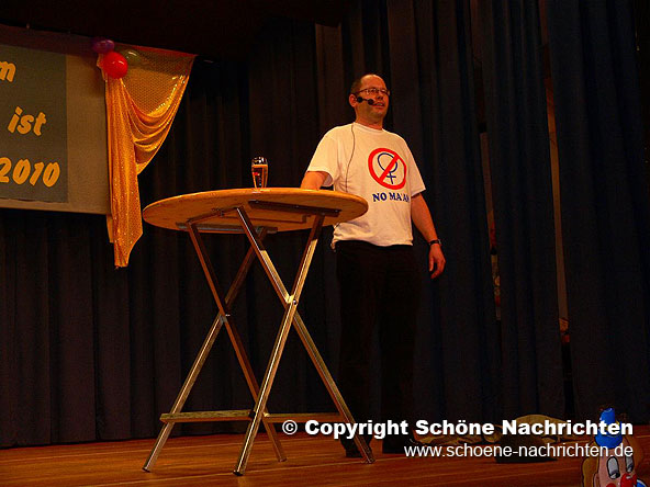 Auf das Problem der vielen Junggesellen in der Feuerwehr sollte ein Redner (Lothar Ebert) eingehen. Doch anstatt die Junggesellen zu bekehren erzählte er dann über die Probleme in seiner Ehe und endete mit dem Motto „No Women, No cry – Kei Frau, kei Geschrei!