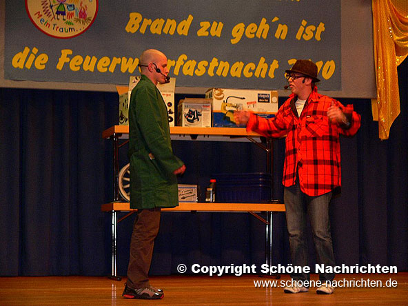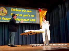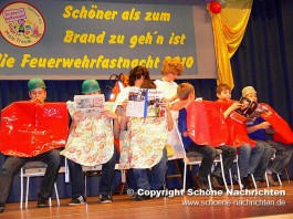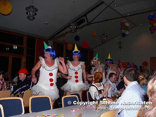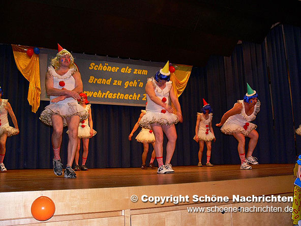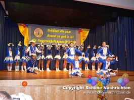 Mit ihrem Sketch um den Umtausch einer gebrauchten Unterhose brachten Conny Kanne und Werner Böse das Publikum noch einmal richtig in Fahrt. Als Schlusspunktund absolutes Highlight des Programms begeisterten die “Dickichtlöscher“ von der Feuerwehr unter der Leitung von Barbara Ziegler, mit ihrem Tanz „Mein kleiner Harlekin“. Anschließend feierte die Feuerwehr bis in den frühen Morgen mit ihren Gästen eine rundum gelungene Fastnachtsveranstaltung.