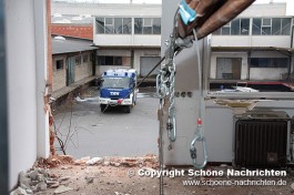 Bei der eingeleiteten Erkundung fanden Sie den schwerverletzten Heizungsmonteur. Nach der Erstversorgung durch einen Arzt konnte dieser mittels Seilbahn aus dem schwer angeschlagenen Bürogebäude transportiert und an den bereitstehenden Rettungsdienst übergeben werden. Die beteiligten Helfer konnten endlich tief durchatmen. Bei der weiteren Erkundung und späteren Abstütz- und Aussteifarbeiten konnten keine weiteren Personen gefunden werden.