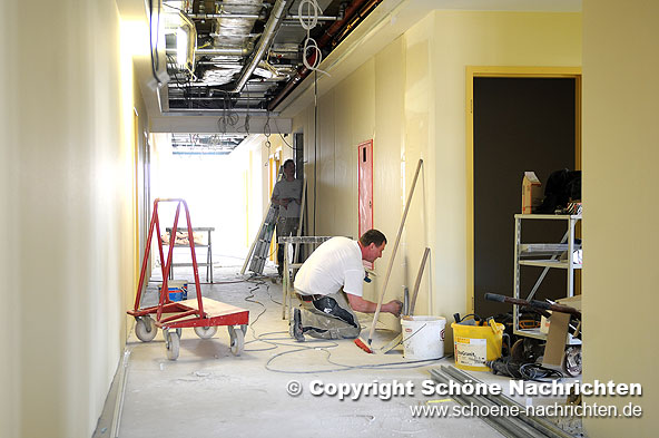 Im Erdgeschoss des Neubaus werden die technischen Vorbereitungen für die Ambulanz der Kinderklinik getroffen. Es wird zwei getrennte Eingänge geben: Ein Eingang für die allgemeine Ambulanz der Kinderklinik und ein weiterer Eingang für Kinder mit hoch ansteckenden Krankheiten, damit diese ohne Kontakt zu anderen Patienten behandelt werden können. „Die Sicherheit unserer Patienten hat bei den Planungen einen sehr hohen Stellenwert“, so Prof. Dr. Repp, Direktor der Kinderklinik.