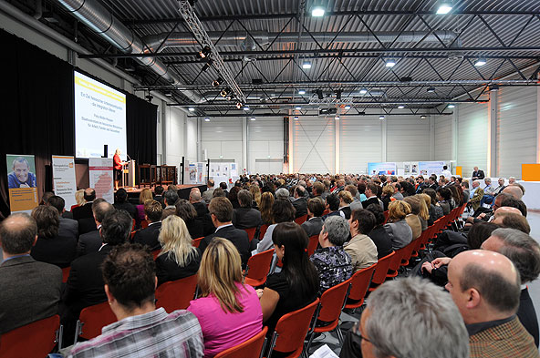 Im Rahmen der Tagung diskutierten am Dienstag über 300 Vertreter aus Wirtschaft und Politik in der Esperantohalle über die Integration von langzeitarbeitslosen Menschen basierend auf dem Bundesprogramm „Perspektive 50plus – Beschäftigungspakte für Ältere in den Regionen“. “Perspektive 50plus” bildet das Dach für bundesweit 62 regionale Beschäftigungspakte. Vertreter von sechs hessischen Beschäftigungspakten präsentierten in der Esperantohalle eigene erfolgreiche Programme und Maßnahmen zur Aktivierung und Integration der langzeitarbeitslosen Menschen. Moderiert wurde die Veranstaltung durch „50plus-Botschafter“ Holger Weinert vom Hessischen Rundfunk.