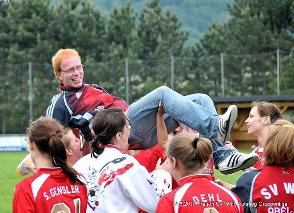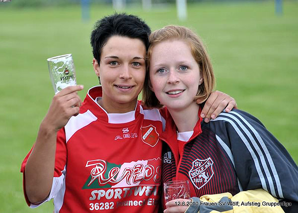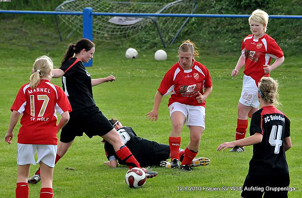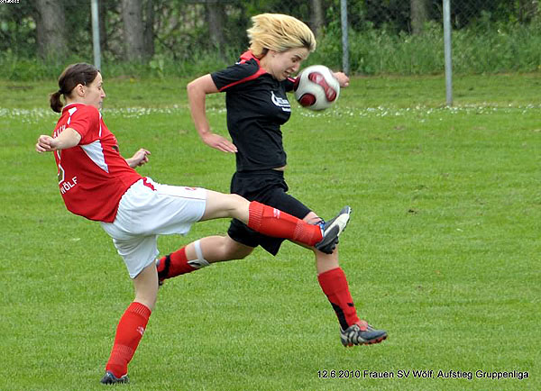 Ähnlich sah das Spiel dann in der zweiten Hälfte aus, wobei Wölf beiverschiedenen Kontern sogar mehr Tormöglichkeiten hatte als noch in der erstenHalbzeit. Letztlich konnte jedoch keine Chance genutzt werden und so blieb esspannend. Das Zittern begann dann 15 Minuten vor Schluss, als SoisdorfsPatricia Flügel plötzlich alleine aufs Wölfer Tor zuging und das 1:0 für denSCS markierte. Doch Wölf hielt dem Aufbäumen der Gastgeberinnen noch einmalstand: Insgesamt gab das ganze Team kämpferisch noch einmal alles und trat alsEinheit auf. So verpufften die Soisdorfer Angriffsbemühungen letztlich und nachdrei Minuten Nachspielzeit ertönte der herbeigesehnte Abpfiff.