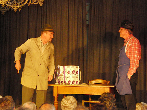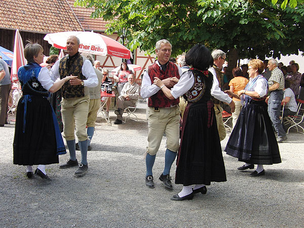 Im Tanzsaal des Museumsgasthauses „Schwarzer Adler“ war wieder „Theater un süsst wos“ geboten. Der kurzweilige Nachmittag, der von der Arge Mundart-Theater Franken gemeinsam mit der Heimatpflege des Bezirks und dem Freilandmuseum veranstaltet wurde, hielt allerhand Schmankerl für die Besucher bereit. Bis in den frühen Abend sorgten im Wirtshaussaal drei Mundartdichter, zwei Gesangs- und Musikensembles sowie fünf Theatergruppen für gelungene Unterhaltung und in den Pausen zeigten die Volkstanzgruppen aus Salz und Fladungen im Biergarten ihr Können.