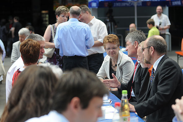 Weyhers. Am vergangenen Sonntag hatte das Unternehmen RhönSprudel zum Frühlingsfest nach Weyhers eingeladen. Neben viel Wissenswertem über die lebendige Natur im Biosphärenreservat Rhön, Unterhaltung durch abwechslungsreiche Auftritte, Vorführungen und Experimente rund ums Thema Wasser gab es auch zahlreiche Attraktionen für die ganze Familie. Durch das Programm führte der aus dem ZDF-Frühstücksfernsehen bekannte TV Moderator Cherno Jobatey.