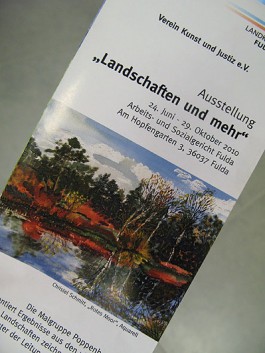 Fulda. Am 24. Juni eröffnete der Verein Kunst und Justiz e.V. die Ausstellung ” Landschaften und mehr ” in den Räumen des Arbeits- und Sozialgerichtes Fulda. Die Malgruppe Poppenhausen präsentiert Ergebnisse aus den vhs-Kursen ” Landschaften zeichnen und malen ” unter der Leitung von Bernd Baldus. Im September 2007 fand der erste vhs-Kurs zu diesem Thema in der Grundschule in Poppenhausen statt. Seit dieser Zeit treffen sich die Teilnehmerinnen regelmäßig jeden Mittwoch zum gemeinsamen Malen. Beeindruckende Highlights der Malgruppe sind nun erstmals beim Verein Kunst und Justiz e.V. im Arbeits- und Sozilagericht zu sehen.