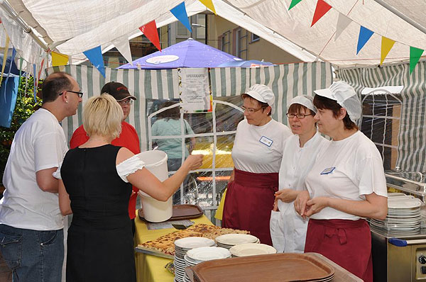 Genauso wie Musik und Tanz zu dem Fest gehören,ist der übliche Basarverkauf und das Glücksrad drehen ,welches besonders den Kindern Freude bereitet,ein fester Bestandteil des Sommerfestes. Bei all den Aktivitäten konnte auch der auftretende Hunger und Durst reichlich gestillt werden. Bis spät Abends feierte man mit Sabine Hohmann, die den Tag musikalisch umrahmte.