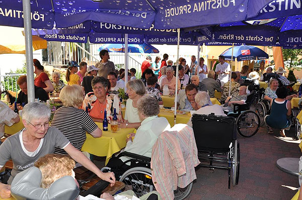 Petersberg. Unter diesem Motto feierten Bewohner, Mitarbeiter und Gäste des Pflegeheims St. Lioba ihr diesjähriges Sommerfest. Frau Maritta Jäger,Einrichtungsleitung, konnte bei herrlichem Wetter viele Gäste begrüßen. Das Motto wurde durch eine Ausstellung mit Bauplänen und reichlichen Bildern aus vergangenen Zeiten umgesetzt. Mit einer Modenschau aus dem vergangenem Jahrhundert überraschten die hauseigenen Models die Festgesellschaft. Der Losverkauf für die hochwertigen Tombolapreise fand reisenden Absatz. Viel Bewegung brachte auch eine musikalisch begleitete Polonaise und der Spaß mit dem Schwungtuch.