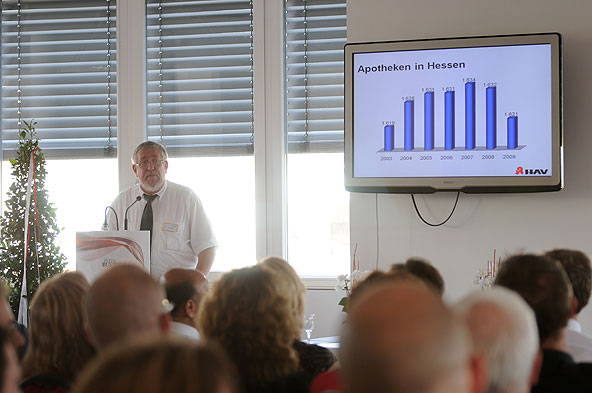 Mit dem Gesundheitszentrum Münsterfeld, das in wenigen Wochen eröffnet werden soll, präsentierte Orthopäde Dr. Wolfgang Zeckey ein ganzheitliches Gesundheitskonzept und innovatives Dienstleistungsmodell. In diesem Zusammenhang wurde auch deutlich, dass der Gesundheitssektor ein vielversprechendes Feld für private Investoren ist, wie Markus Röhner, Vorstandsvorsitzender der R + S Solutions AG, in seinem Vortrag hervorhob. Die Zukunftsfähigkeit hessischer Apotheken thematisierte Dr. Peter Homann, Vorsitzender des Hessischen Apothekerverbandes.