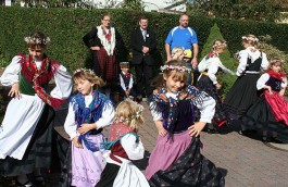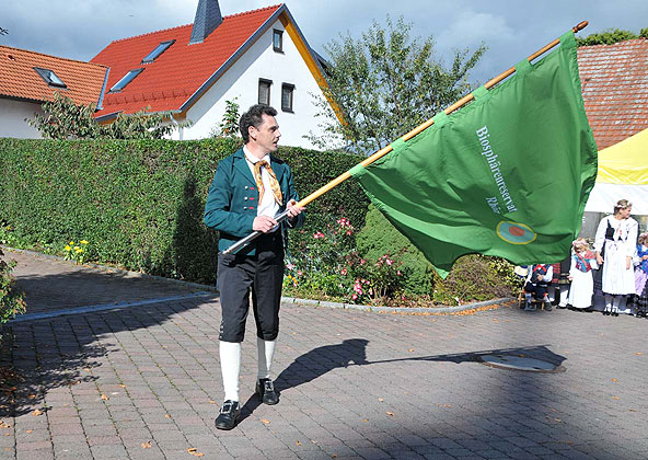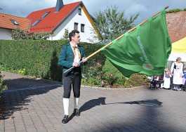 „Im Außenbereich der Propstei soll ein Erlebnis-Spielbereich für Kinder entstehen. Ausgestaltet mit hiesigen Baumaterialien und in Verbindung mit der Deutschen Vulkanstraße soll der Fokus dabei auf den geologischen Besonderheiten der Rhön liegen. In diesem Bereich wird dann die originelle Skulptur von Robert Kolbe einen würdigen Platz erhalten“, so Abe. Während der Preisverleihung hob Landrat Reinhard Krebs die Wichtigkeit hervor, „die ursprüngliche Handwerksform des Schnitzens für die Zukunft zu bewahren und als Wirtschaftszweig zu erhalten, was insbesondere auch den Kommunen zugutekommt“. Im Anschluss an die Preisverleihung fand im Propsteihof ein Benefizkonzert mit dem Thüringer Polizeimusikkorps aus Erfurt zugunsten der Sanierung des historischen Festsaales statt. Die Kaltenlengsfelder Folkloretanzgruppe unter Leitung von Frank Hößel zeigte Traditionstänze und Kirchgemeinde wie Vereine engagierten sich mit einem bunten Aktionsprogramm. Seine eigene Choreographie des Fahnenschwingens nach einem Rhönlied aus der Feder von Kurt Schwarz, eingesungen von Walter Gräf, präsentierte schließlich Frank Hößel mit einer vom Biosphärenreservat Rhön gesponserten leuchtend grünen Großfahne, die ihm zuvor feierlich durch Karl-Friedrich Abe überreicht worden war.