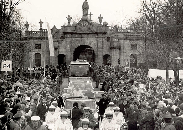 Alt und jung jubelten ihm zu Zehntausenden zu, als der Heilige Vater im Anschluss an die Messfeier über die Kastanienallee (heute: Johannes-Dyba-Allee), die Pauluspromenade, den Bonifatiusplatz und den Schlossgarten zum Bischofshaus fuhr. Noch am Nachmittag jenes denkwürdigen 18. November flog der Papst vom BGS-Gelände ab und weiter nach Altötting. Es war in neuerer Zeit der bislang einzige Besuch eines Nachfolgers des heiligen Petrus in der Bonifatiusstadt; im Jahre 1020 war schon Papst Benedikt VIII. in Fulda gewesen.
