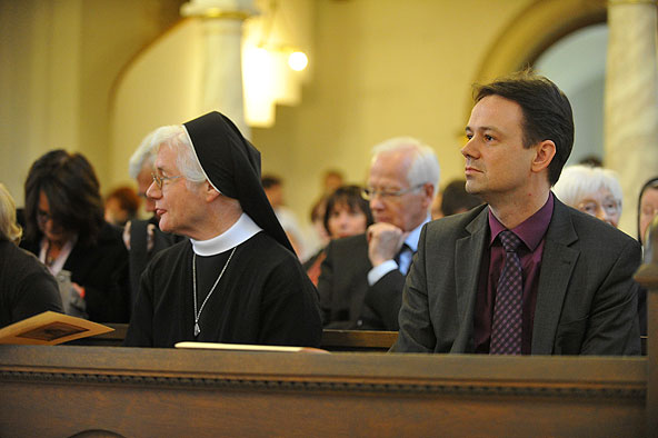 Generaloberin Sr. M. Rosalia Bagus wünschte dem neuen Chefarzt ein konstruktives und harmonisches Miteinander mit allen Mitarbeiterinnen und Mitarbeitern des Herz-Jesu-Krankenhauses zum Wohle der Patientinnen und Patienten. In ihrem Geistlichen Wort hatte die Generaloberin das vinzentinische Selbstverständnis, die Dienstgemeinschaft und das Leitbild „Liebe sei Tat“ näher erläutert.