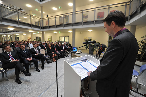Geschäftsführer Michael Sammet konnte zur Amtseinführung rund 150 Gäste aus Medizin, Wirtschaft und Politik begrüßen. Sammet beschrieb den neuen Chefarzt als ausgezeichneten Chirurgen und besondere Persönlichkeit. In seiner Begrüßungsrede skizzierte er den Lebenslauf des Mediziners.