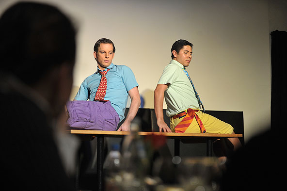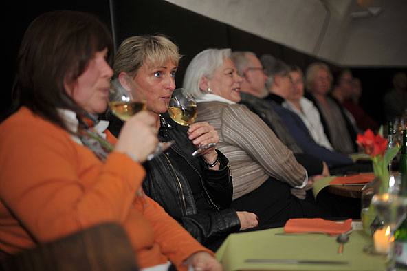 Fulda. Einen “Tanz auf dem Tisch” hatte die Entertainerin Marianne Blum für die erste Veranstaltung 2011 ihrer Reihe “Gernsehen und Abendessen” angekündigt. Diese Ankündigung wurde von den Tänzern Jan-Andreas Hönscher und Jackson Ortega wörtlich genommen. Der gebürtige Fuldaer Hönscher, Inhaber der Tanzschule “La Danse”, und der aus Caracas stammende Venezuelaner Ortega tanzten nicht nur auf, an und sogar unter Tischen, sondern auch mit ihnen, wobei selbst die Diskussion, wo welcher Tisch hingestellt werden soll, tänzerisch ausgetragen wurde und so ganz nebenbei bewiesen wurde, dass die Tänzer auch Selbstironie zeigen können.