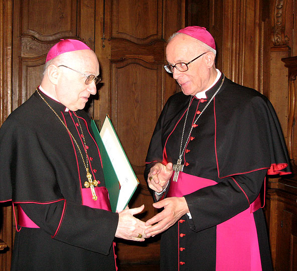 „Möge die Freundschaft, die zwischen zwei Studenten damals begann, den Weg weisen und möglichst vielen jungen Priesteramtskandidaten zum Vorbild dienen“, so Bischof Algermissen zu der Verbindung der beiden Heimatvertriebenen, aus der viel Gutes zugunsten der beiden Bistümer entstanden sei. Auch heute noch sei es die Aufgabe der Theologie, der Professoren der Theologie mit den Studierenden, „sich dem Geheimnis Gottes immer wieder neu zu nähern“, machte der Oberhirte deutlich.