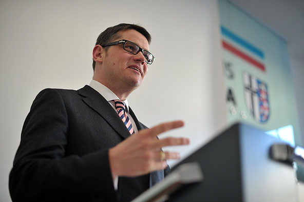 Vize-Landrat Dr. Heiko Wingenfeld, der neben einer zahlenmäßig starken Abordnung des Alpenvereins Vertreter von Kommunalpolitik, Sport und Schulen begrüßen konnte, freute sich, dass nach zweijährigen Diskussionen vor allem um den endgültigen Standort der Kletterhalle und offene Finanzierungsfragen mit der Überreichung der Landeszuwendung ein wichtiges Etappenziel erreicht worden sei. „Wir befinden uns jetzt auf der Zielgeraden.“ Die Beteiligten an dem interkommunalen Projekt – der Landkreis und die Stadt Fulda sowie die Gemeinde Petersberg – hätten an einem Strang gezogen. Dr. Wingenfeld dankte ausdrücklich der Sparkasse Fulda für ihr finanzielles Engagement. Nach den Worten des Ersten Kreisbeigeordneten fördere Klettern insbesondere Selbstvertrauen, Selbsteinschätzung sowie Teamfähigkeit und sei deshalb auch für den Schulsport wichtig.