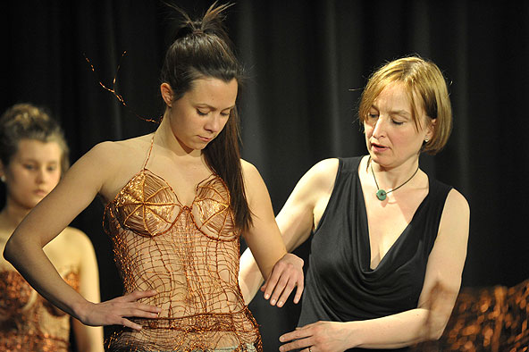 Fulda. Die letzten Vorbereitungen laufen: Technik, Licht, Musik, Timing, Umziehen und Choreographie werden noch einmal geprobt. Joanna Skurskas einzigartiges Happening “NetzWerk” steht an. Am 1. April 2011, 21:00 Uhr zeigt die Künstlerin ihre Kleider aus Draht an 13 jungen Frauen im Kulturzentrum Kreuz. Ein Pflichtevent für jeden Liebhaber der schönen Künste. Der Vorverkauf läuft. Die Karten gibt es in der RED CORRIDOR GALLERY, im Museumscafé und bei der Fuldaer Zeitung. VVK: 12.-, Schüler: 7.- , AK: 14.- , Einlass 20:30 Uhr