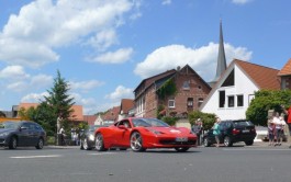 Gegen 13.00 wurde die Route fortgesetzt und führte durch die bezaubernde Rhöner Landschaft zum Dreiländereck, wo das nächste Highlight wartete: Die ehemals „längste Bergrennstrecke“ Deutschlands. Mit ihren 4,2km bot die eigens dafür gesperrte Rhönhofstraße den Fahrern die Möglichkeit die Leistung ihrer Maschinen abzurufen. Der Weg zurück führte über Hilders und Hofbieber zurück in Richtung Fulda. Eines steht fest: Der Ferrari-Boxenstopp in Poppenhausen war ein wirklich tolles Erlebnis.