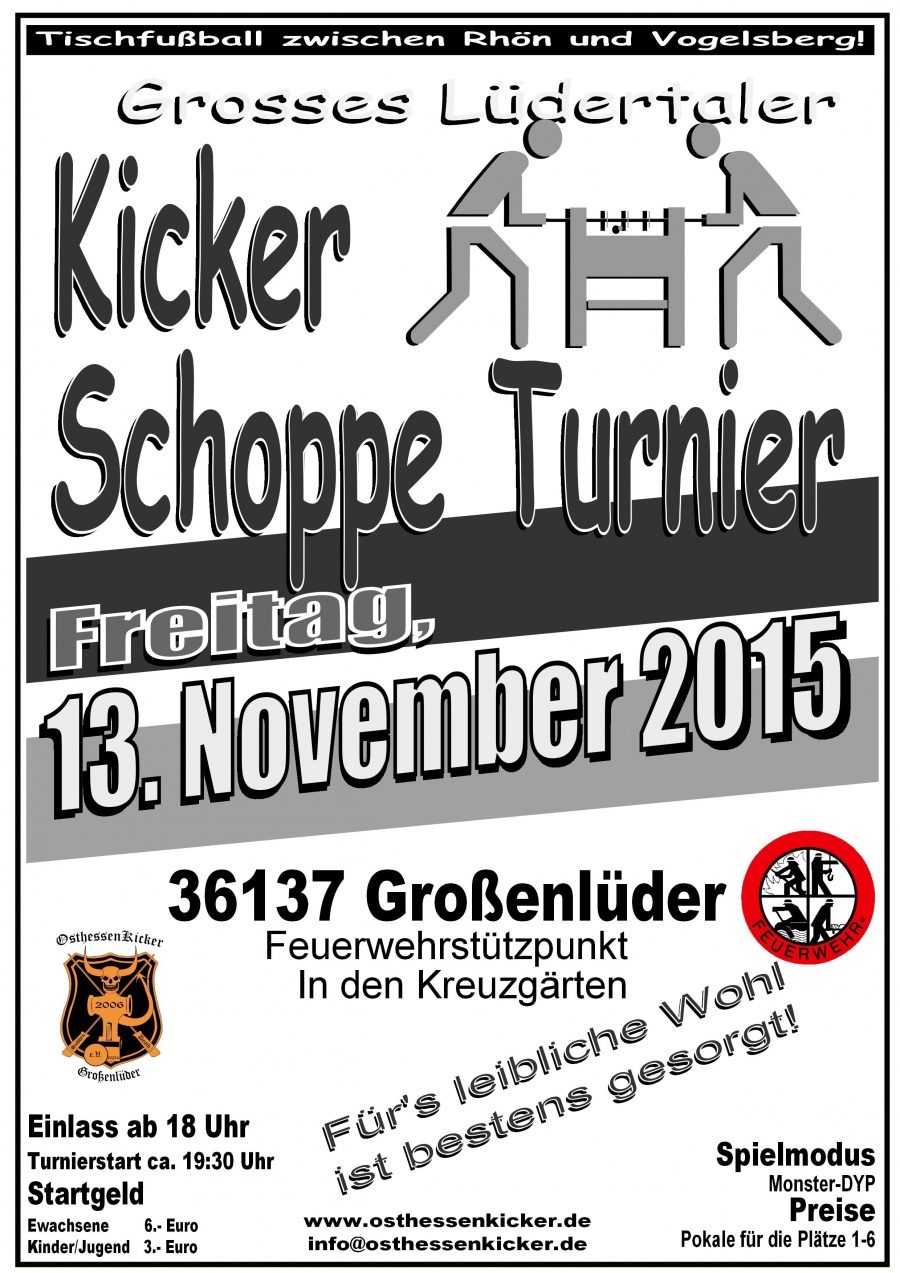 Einladung zum „Großen Lüdertaler Kicker Schoppe Turnier“ am 13. November 2015 im Feuerwehrstützpunkt Großenlüder